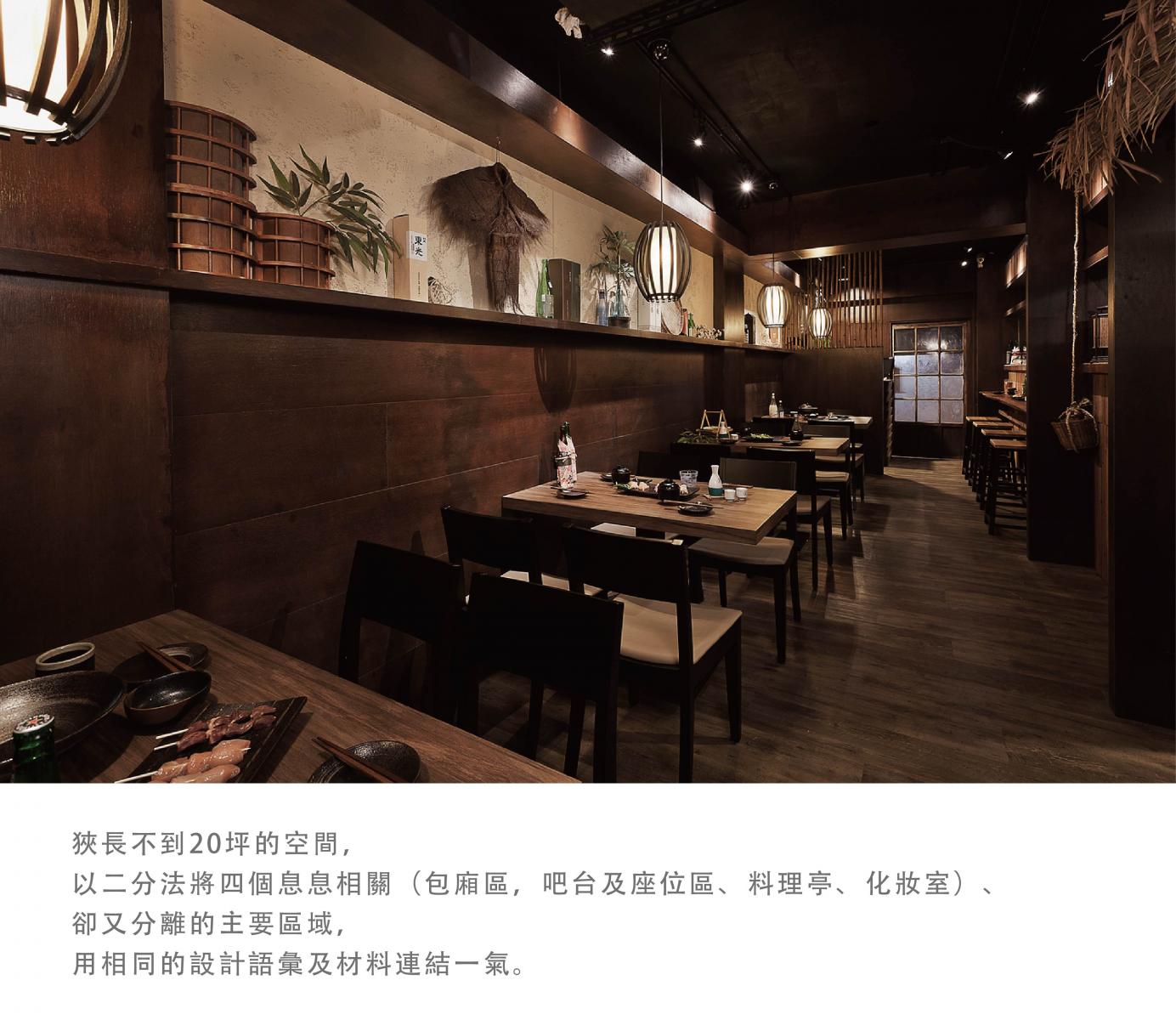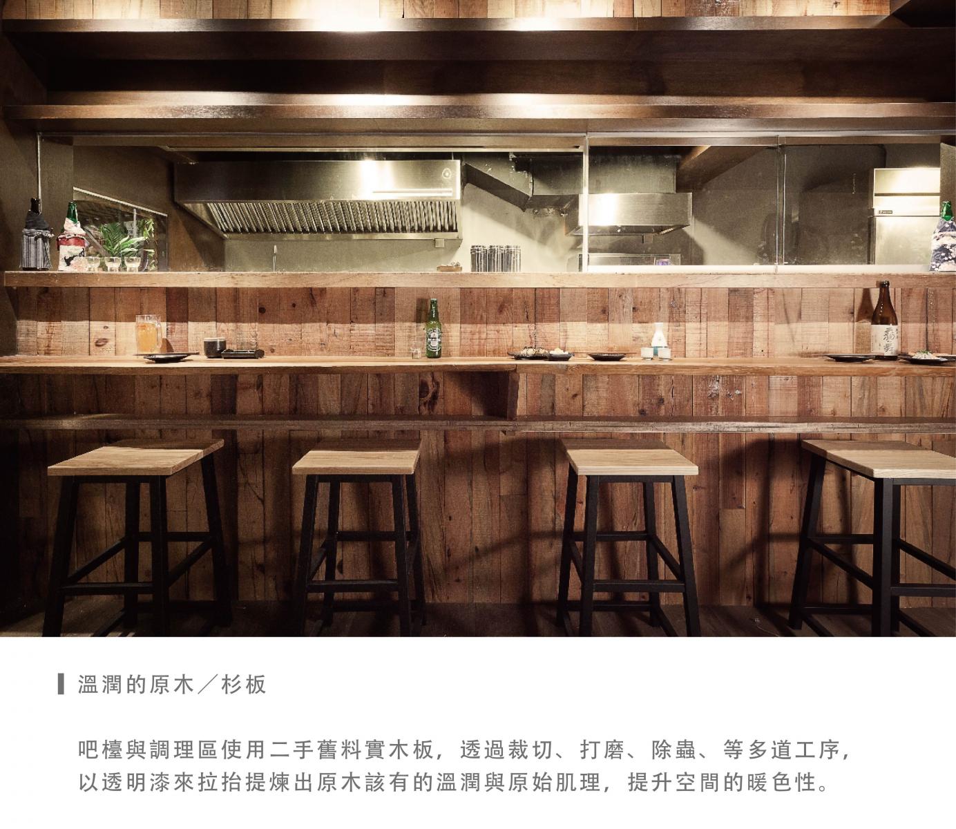 三個契機,一群熱愛居酒文化的年輕人、一間老房子、一筆極低的預算。我們採用舊料場的回收材料,當作主要的材料,試圖融入這三個契機中。累加後,以居酒精神的形式,將這種文化,重生於快節奏步調的南港科學園區旁。