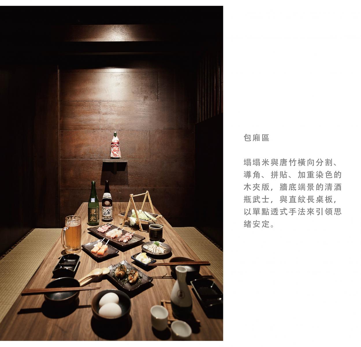 居酒屋氣氛熱絡,讓城市人緊繃的神經頓時鬆弛下來,享受食物和酒帶來的慰藉。日式文化的禪與靜,在南港演繹出另一場屬於當地的禪、語、境。