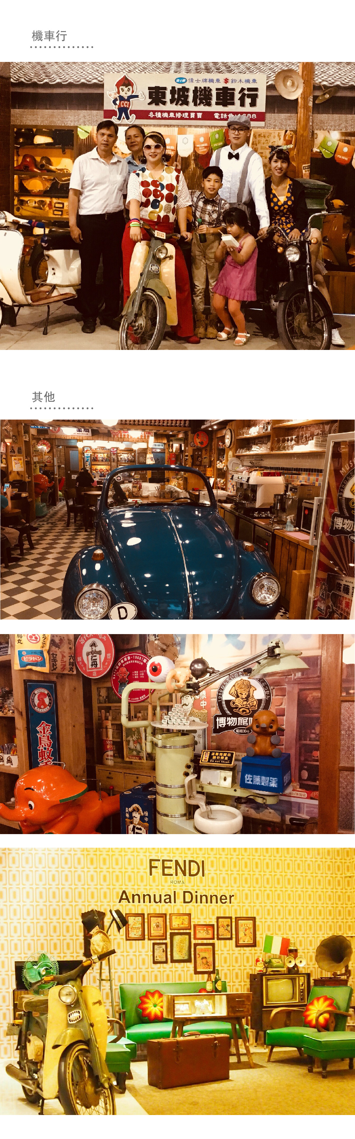 精選案例 Works 50年代懷舊復古主題Party特別企劃 經過精心規劃的懷舊主題佈置,令人彷彿坐上時光機,回到了50年代的早期台灣的柑仔店、戲院、機車行、家庭場景等,藉由復古主題讓參與者彼此精心打扮、創造話題、拉近距離,適合公司尾牙、員工家庭日、VIP會員日等活動企劃,讓您有不一樣的熱鬧氛圍。