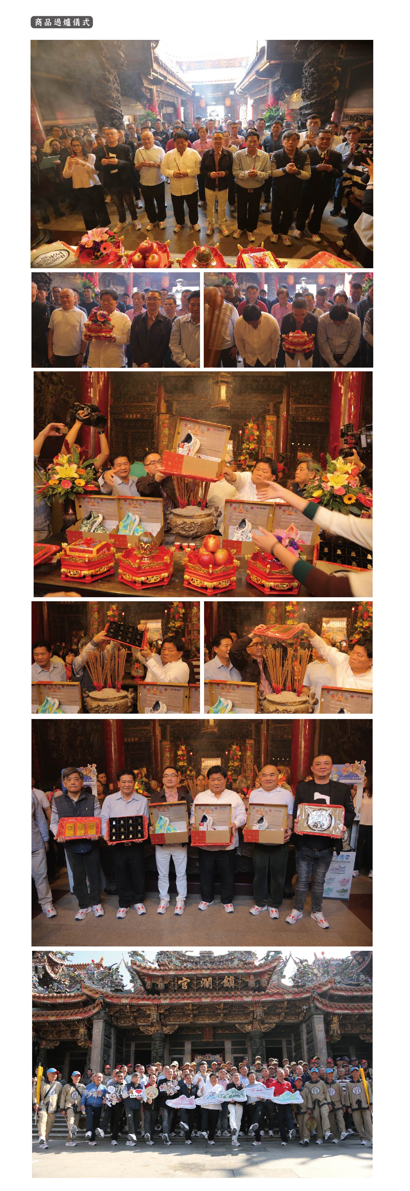 精選案例 Works PG SHOES大甲媽祖遶境專用鞋商品上市宣傳記者會暨快閃店開幕儀式 2020庚子金鼠年大甲媽祖遶境專用鞋 由台灣在地製鞋專家與大甲鎮瀾宮聯手打造全台首創「大甲媽祖遶境專用鞋」。 ▌ PG SHOES ▌大甲媽祖遶專用鞋 ▌大甲鎮瀾宮 ▌2019